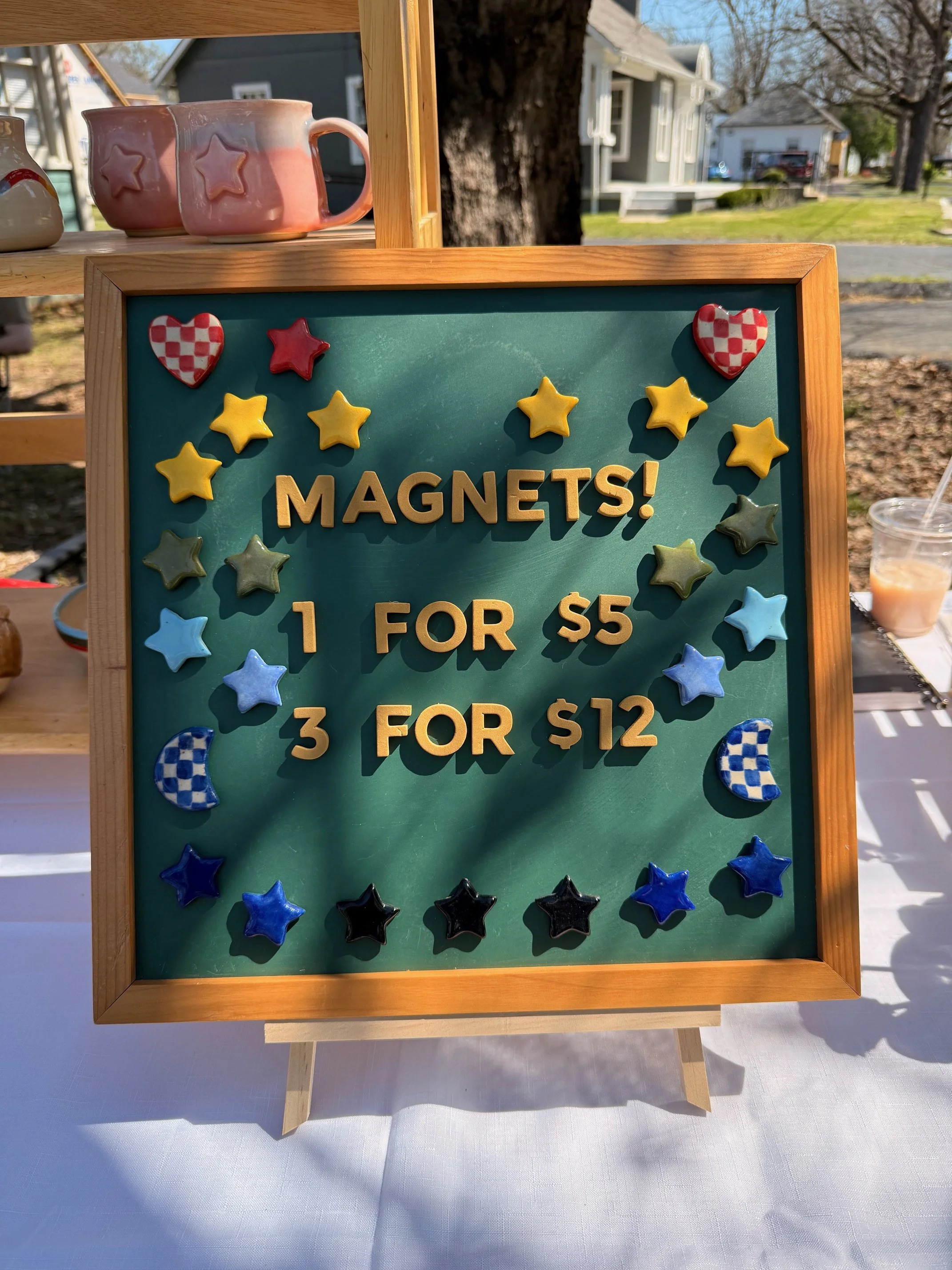 Ceramics My booth set-up at a local festival View fullsize View fullsize View fullsize Jars View fullsize View fullsize View fullsize View fullsize Rainbow Collection View fullsize View fullsize View fullsize Star Collection View fullsize View fullsize View fullsize View fullsize Magnets and Worry Stones View fullsize Worry stones View fullsize Magnets View fullsize Magnets Vases and Misc. View fullsize View fullsize View fullsize